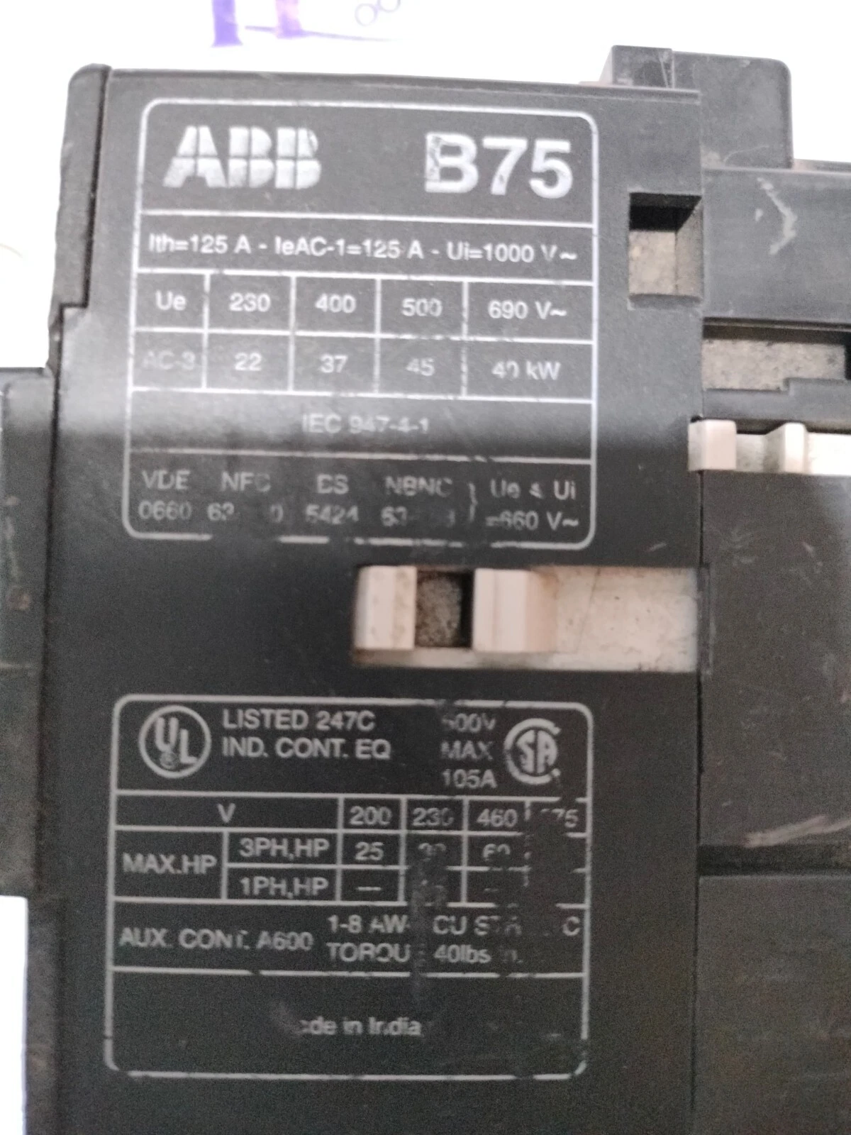 ABB B75 125A CONTACTOR SUPERIOR QUALITY PRODUCT FREE SHIPPING WORLDWIDE