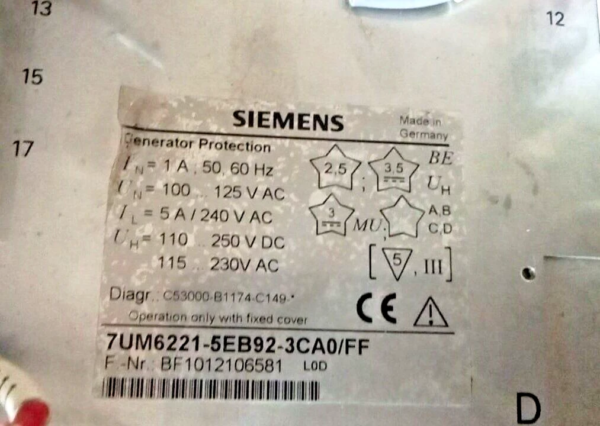 SIEMENS 7UM6221-5EB92-3CA0/FF (BF1012106581) GENERATOR PROTECTION RELAY SUPERIOR QUALITY PRODUCT FREE SHIPPING WORLDWIDE